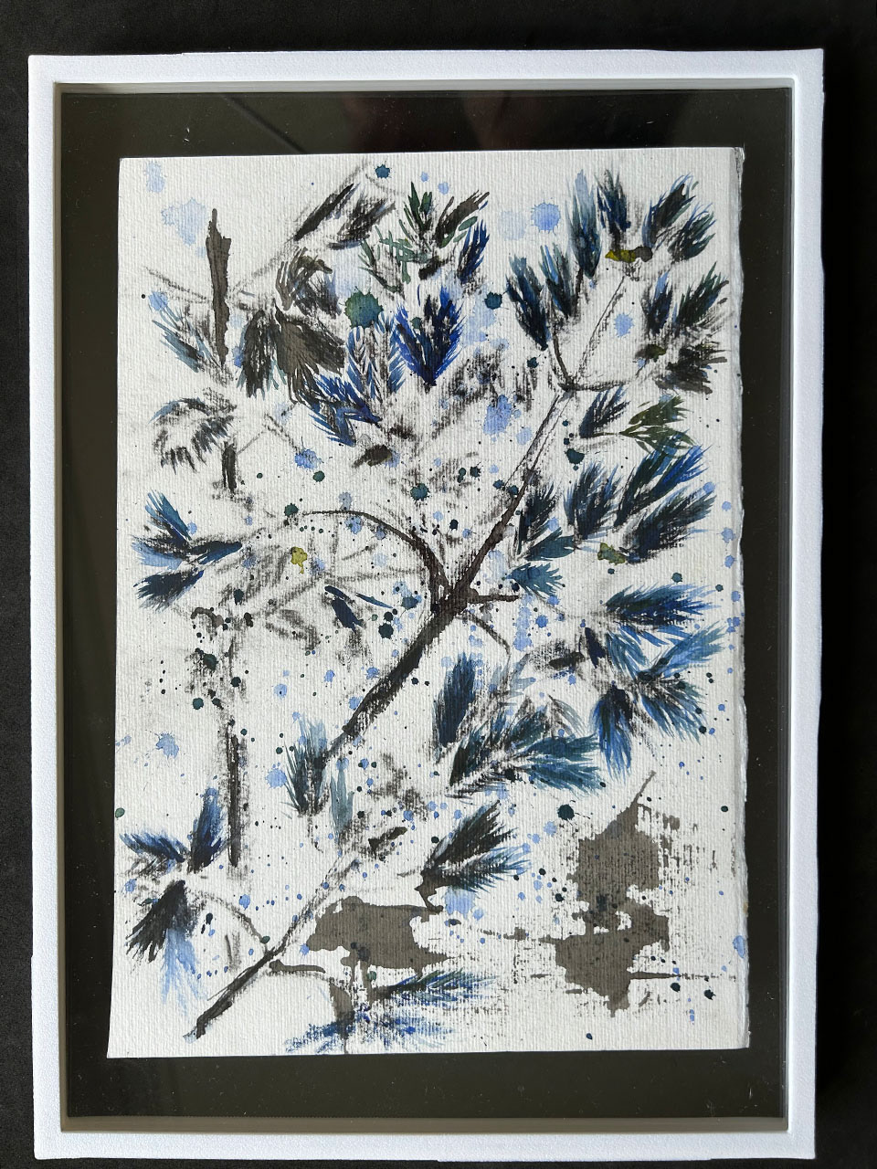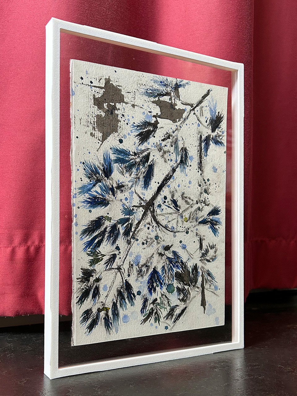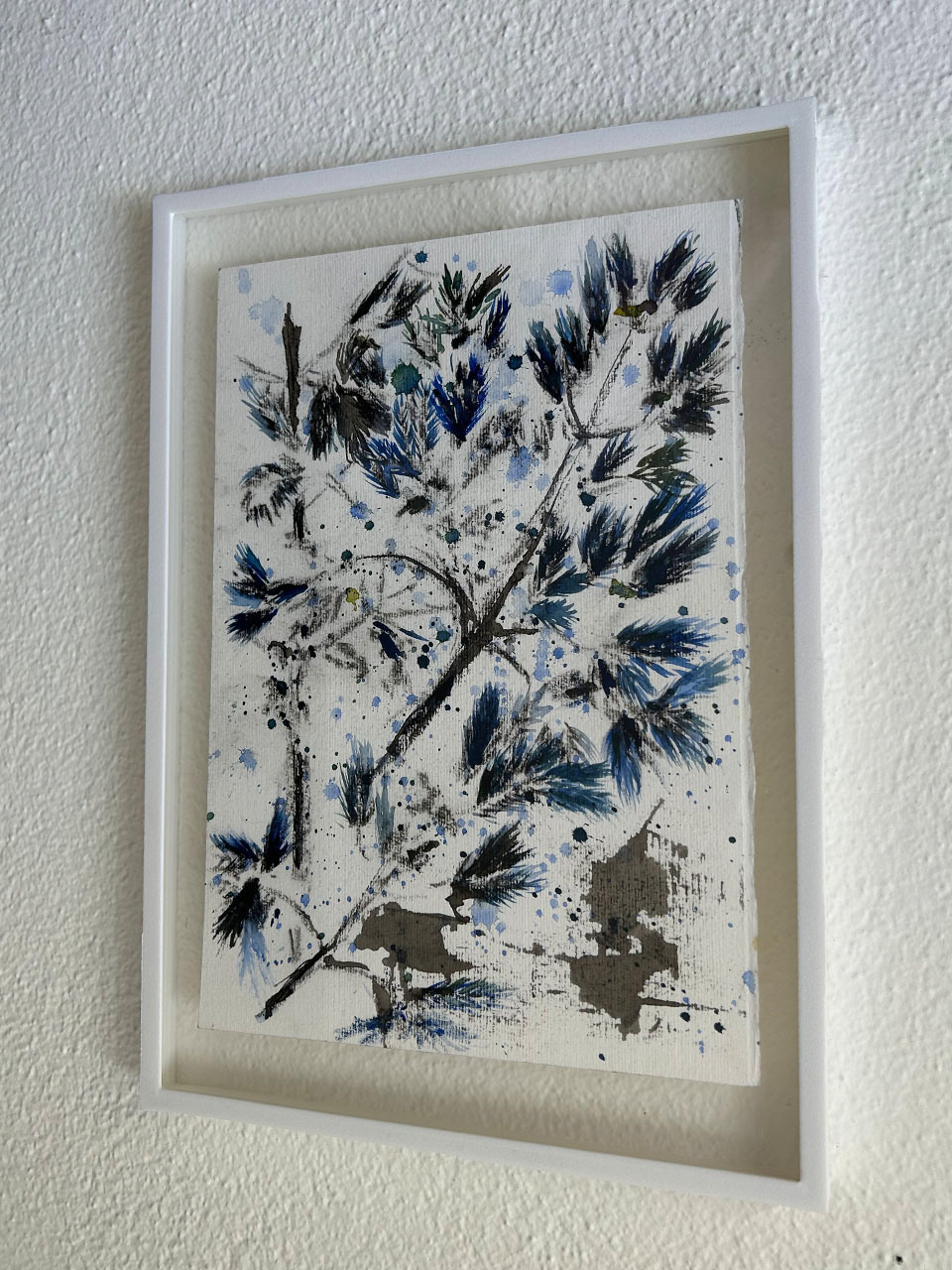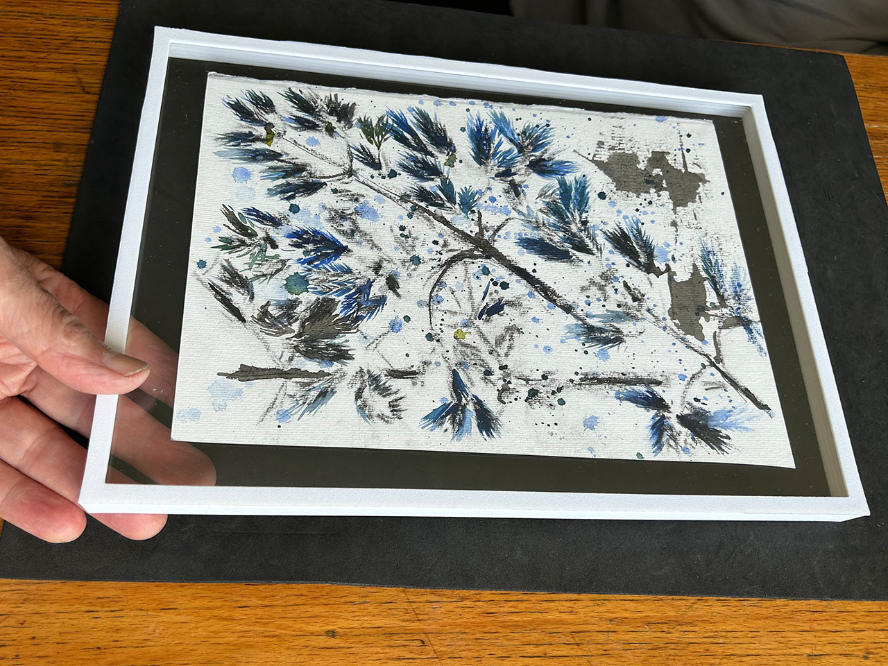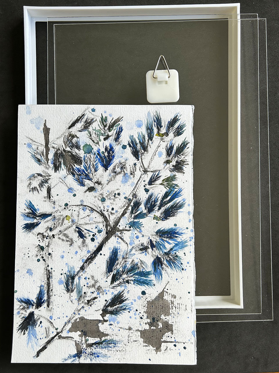 4 parts, included the painting: the frame-white, two acrylics with one triangle hook